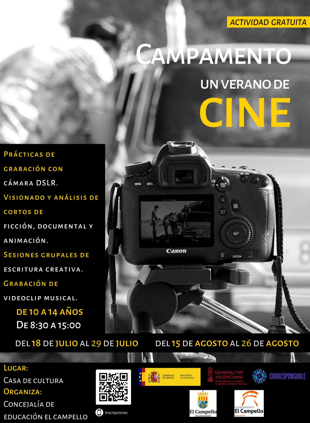 - El campamento de cine del 18 al 29 de julio y del 15 al 26 de agosto