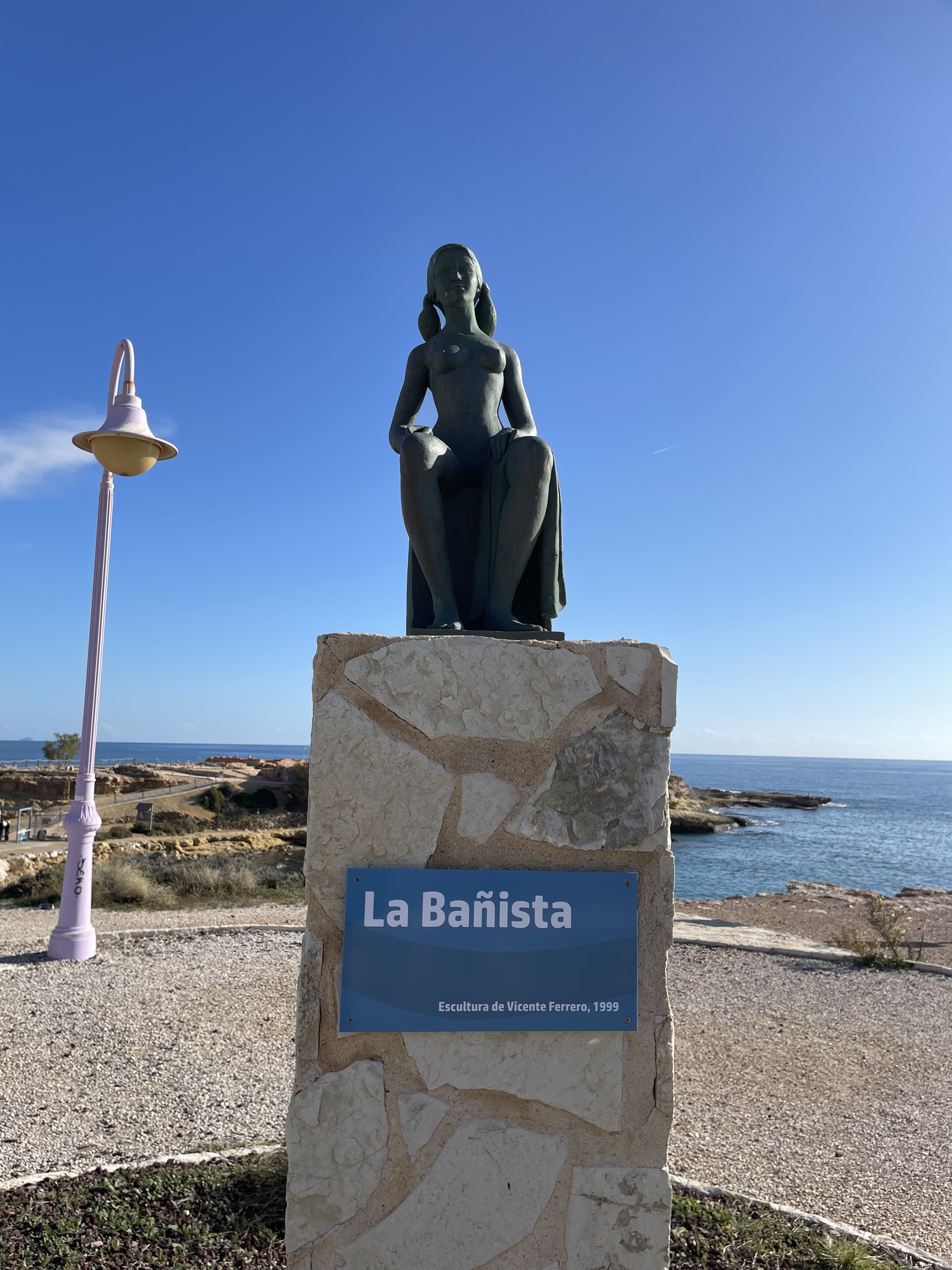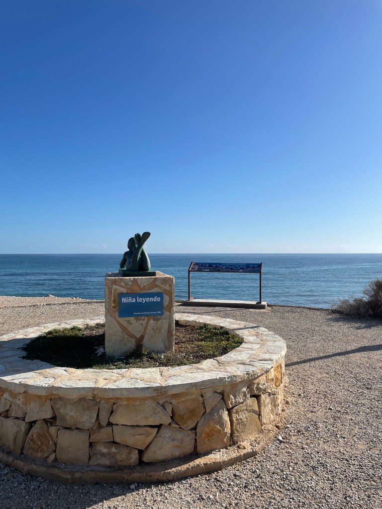 A lo largo del paseo, el visitante se encuentra también con un aljibe y con dos esculturas del artista Vicente Ferrero, perfectamente integradas en el paisaje: “La bañista” y “Niña leyendo”. Dos obras inspiradas en la figura femenina que refuerzan el diálogo entre arte contemporáneo y entorno natural.