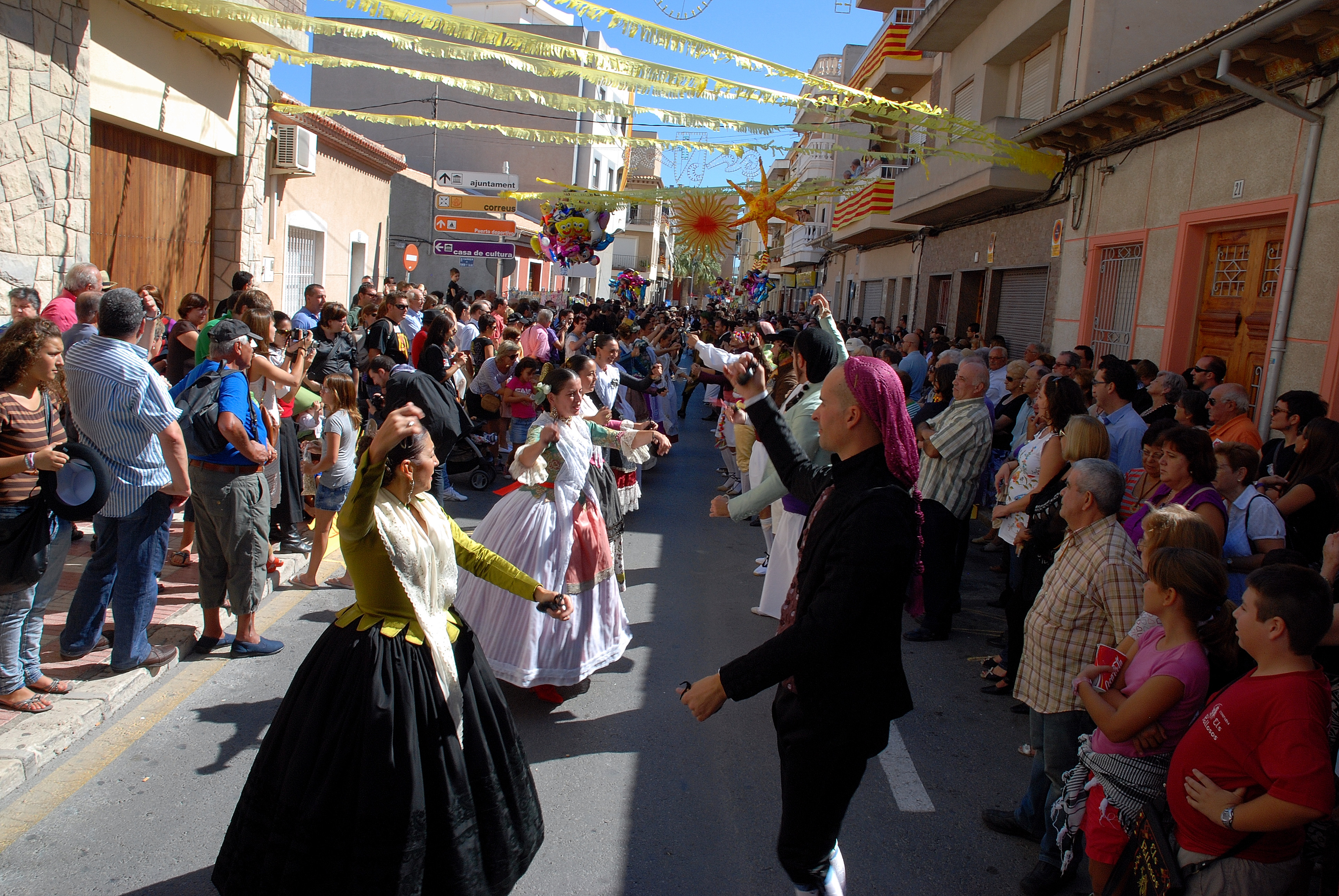 Muchos son los actos que jalonan estos días, entre ellos hay que destacar los “alardos” y embajadas frente al castillo, y especialmente los coloridos desfiles que llenan las calles del municipio de música y luz (el principal, en la tarde del 12 de Octubre). El día 15 se suceden los actos religiosos en horno a Santa Teresa y la Virgen de los Desamparados, para finalizar con el magnifico castillo de fuegos artificiales.